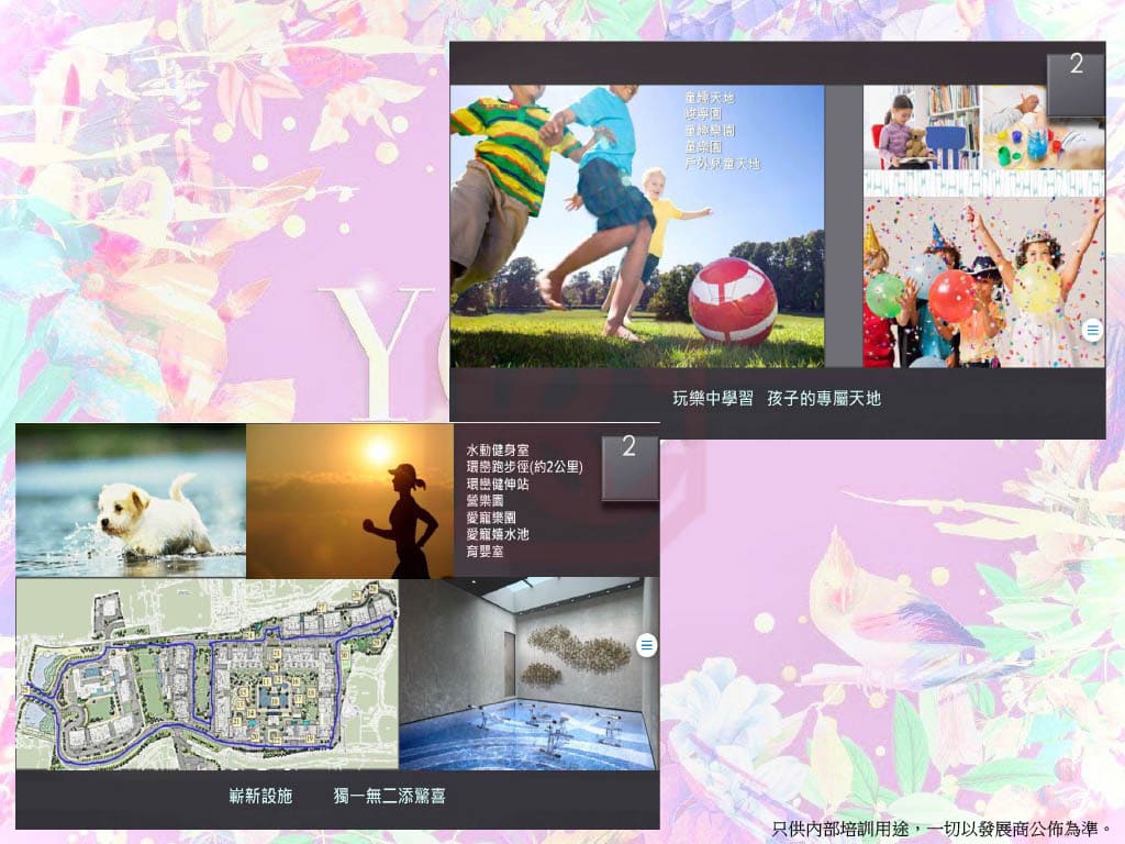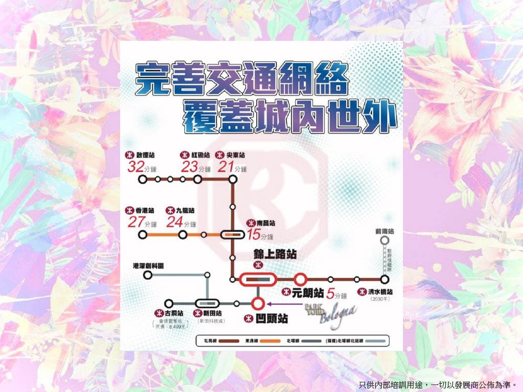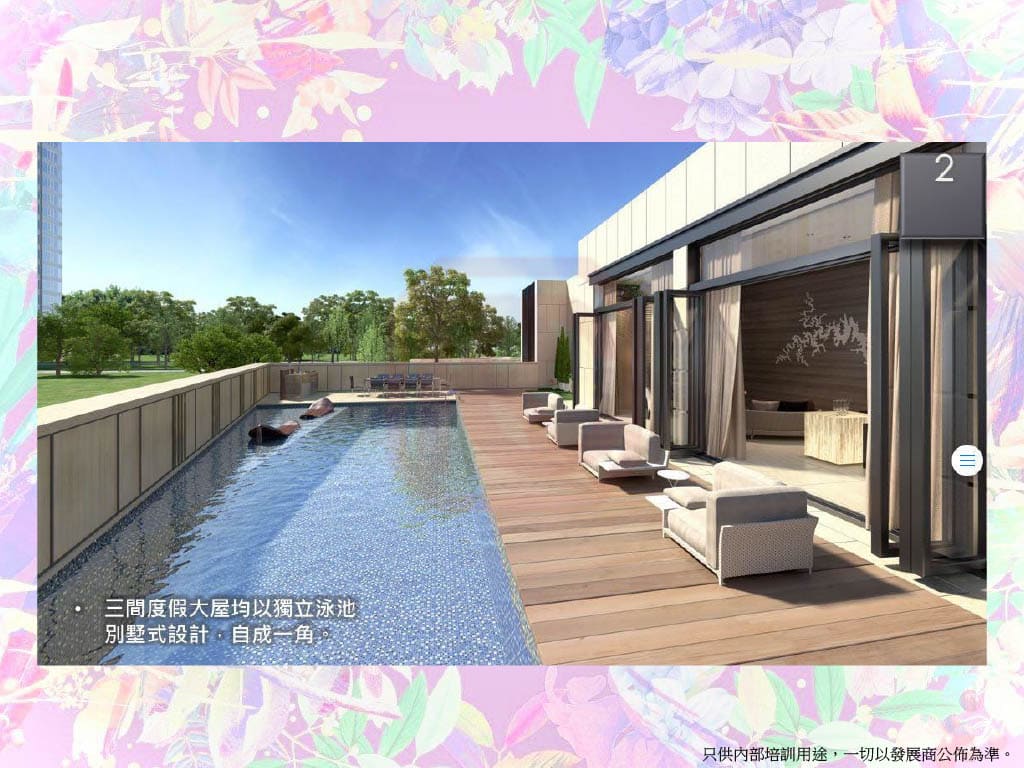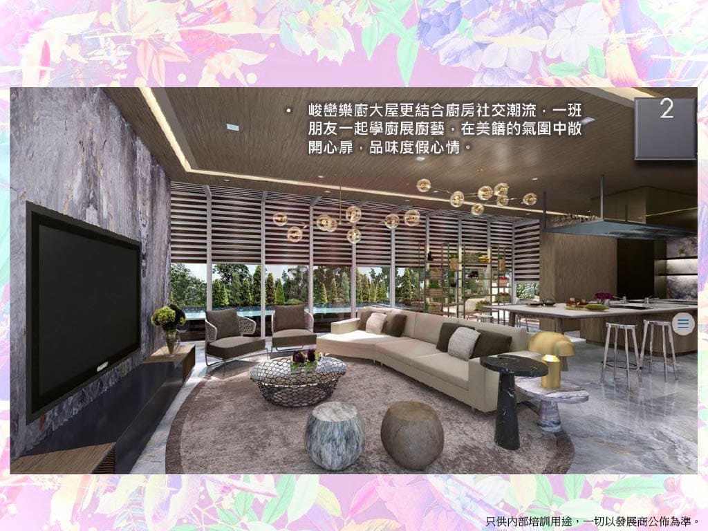 本廣告中之影片、相片、圖像及繪圖並非於期數或發展項目實景拍攝,亦並非説明期數或發展項目落成時之最後外觀或其景觀。該些影片、相片、圖像及繪圖經電腦修飾處理,影片、相片、圖像及繪圖內的裝置、裝修物料、設備、裝飾物及其他物件等及其展示之景觀不一定會在期數或發展項目或其周邊地方出現,僅供參考,且不構成任何賣方就期數或發展項目或其任何部份不論明示或隱含之任何要約、承諾、陳述或保證。